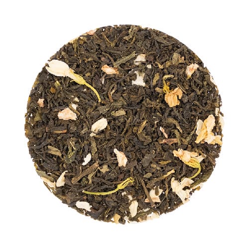 Desde las montañas de China llega el té verde Sencha, ligero y vibrante, fusionado con la dulzura jugosa del durazno maduro y el aroma floral de pétalos de jazmín.