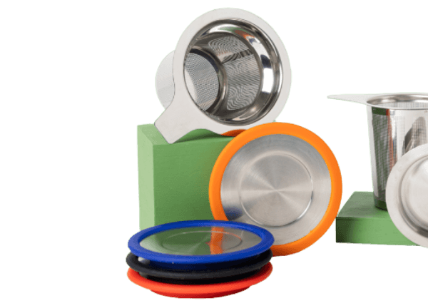 Colador de acero inoxidable de grado 18/8 material muy resistente y que no altera el sabor de la infusión. Con unas asas que asegura que el filtro no caiga dentro de la taza y facilitar su extracción.