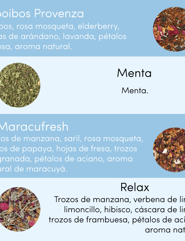 - Ingredientes premium: Nuestros tés son 100% naturales, garantizando frescura y un sabor excepcional en cada taza.