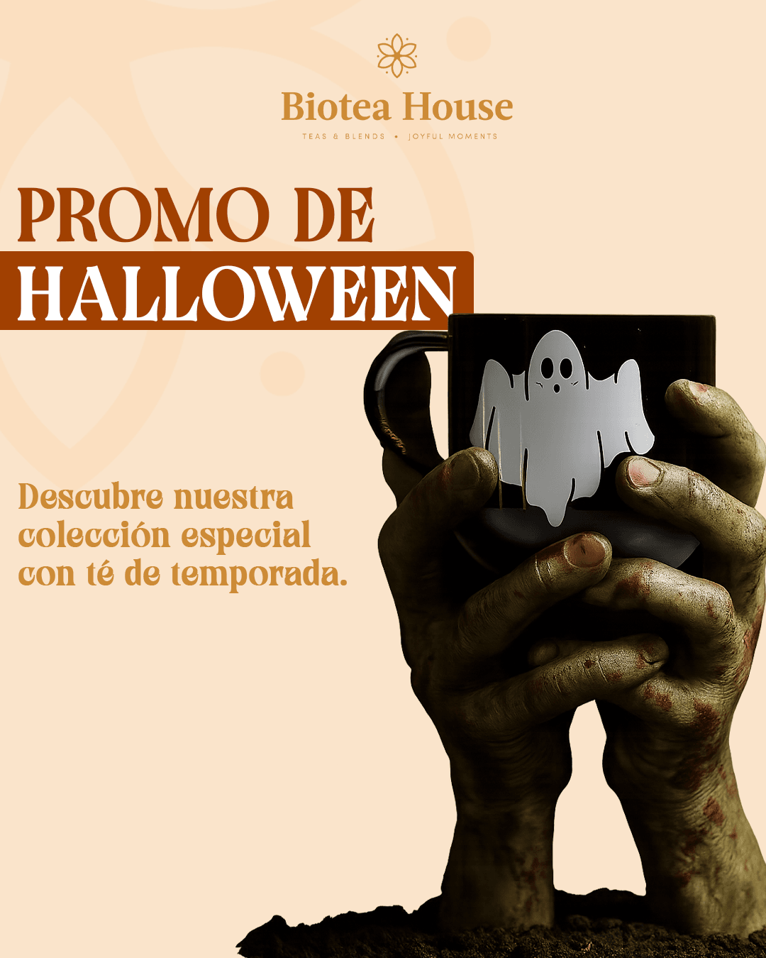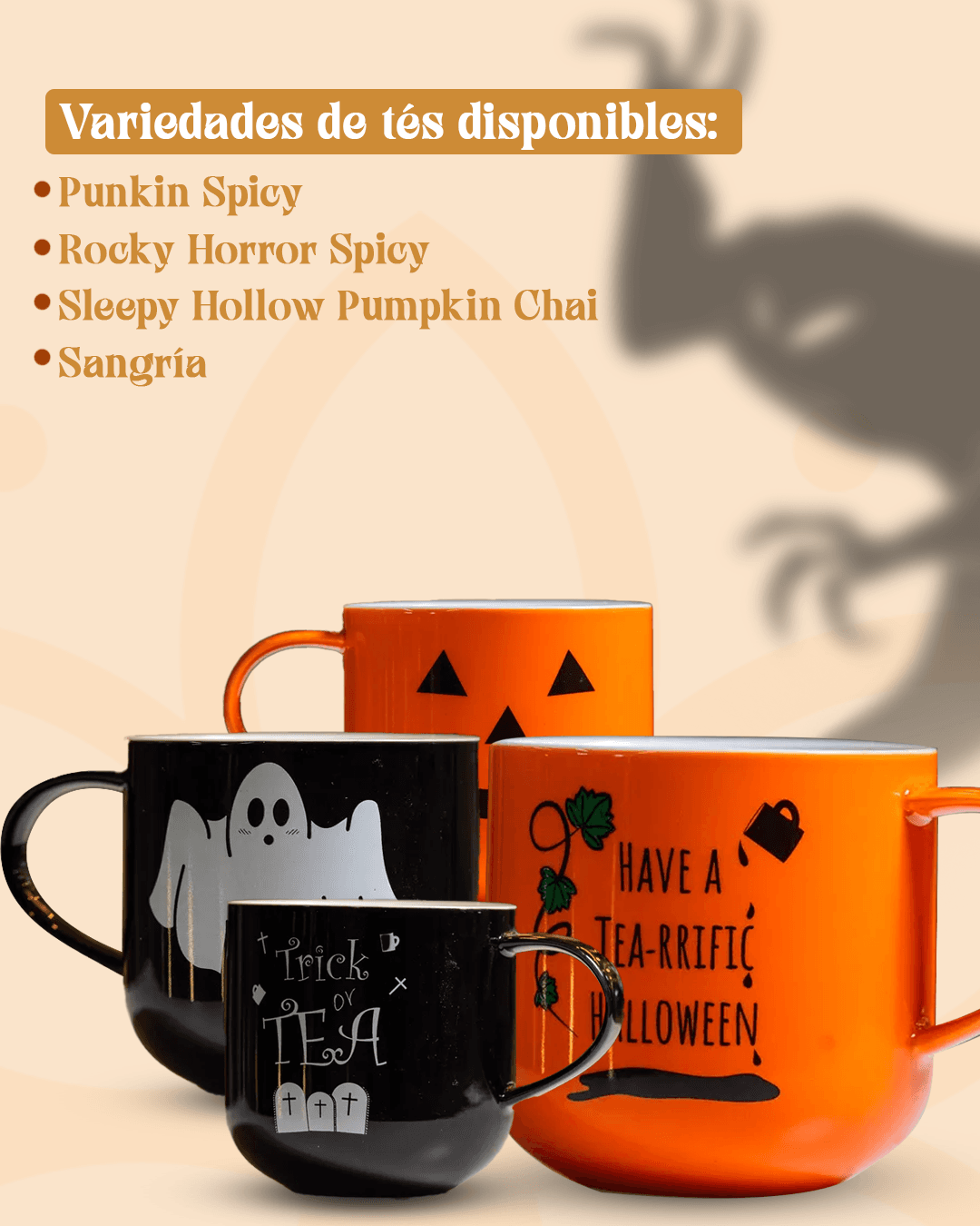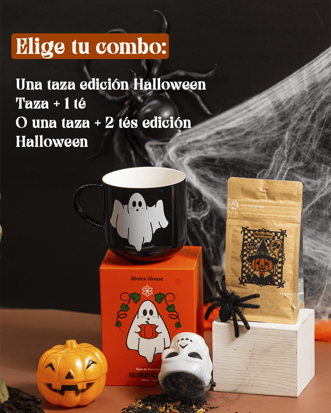 Celebra este mes de Halloween con nuestra Promo! Esta oferta especial te permite elegir una taza y dos infusiónes o tés deliciosos de nuestra cuidadosa selección, perfectas para llenar tus tardes de sabor y calidez. 🍵🎃✨