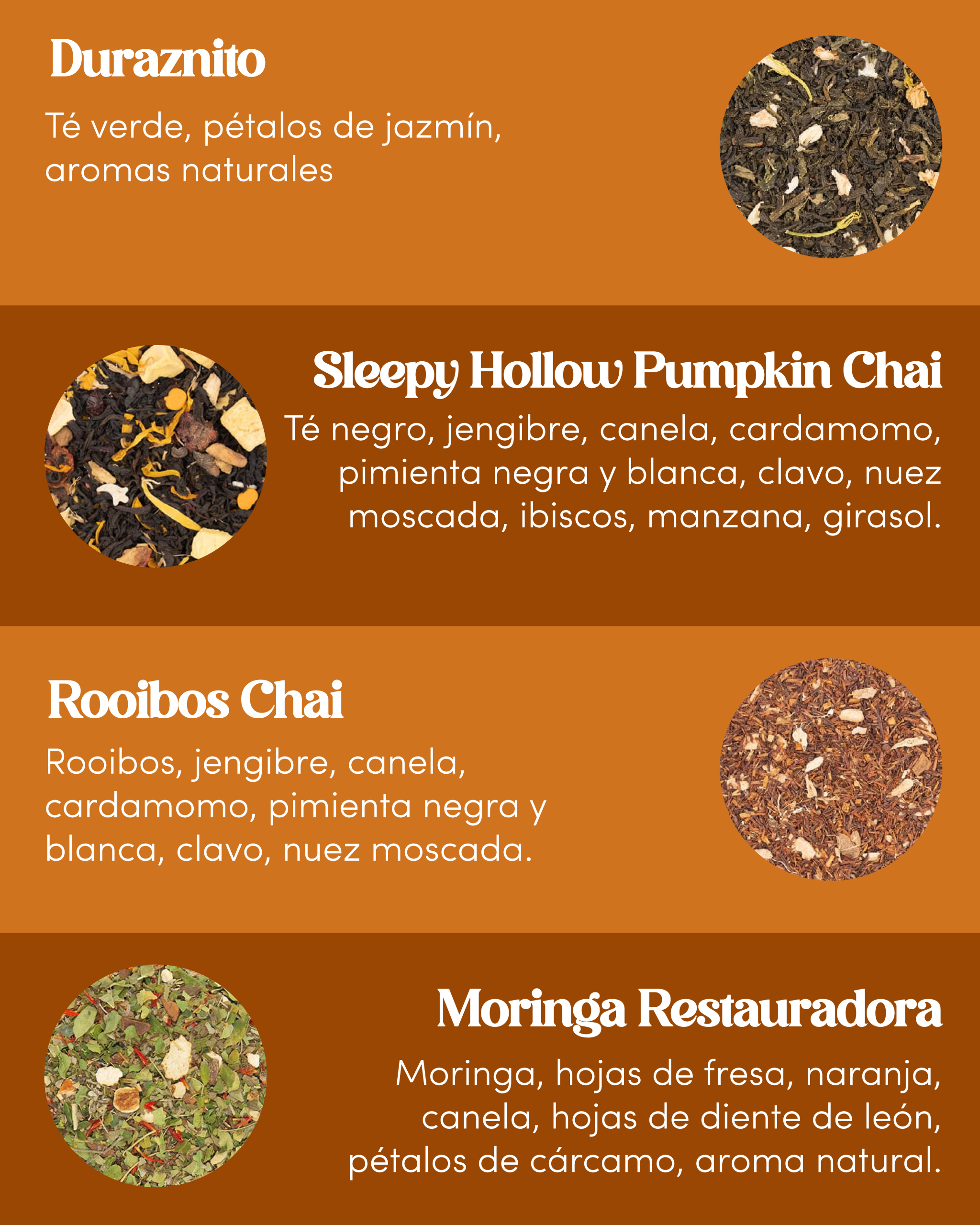 - Elección Personalizada: Selecciona tus tés preferidos de nuestra variedad.