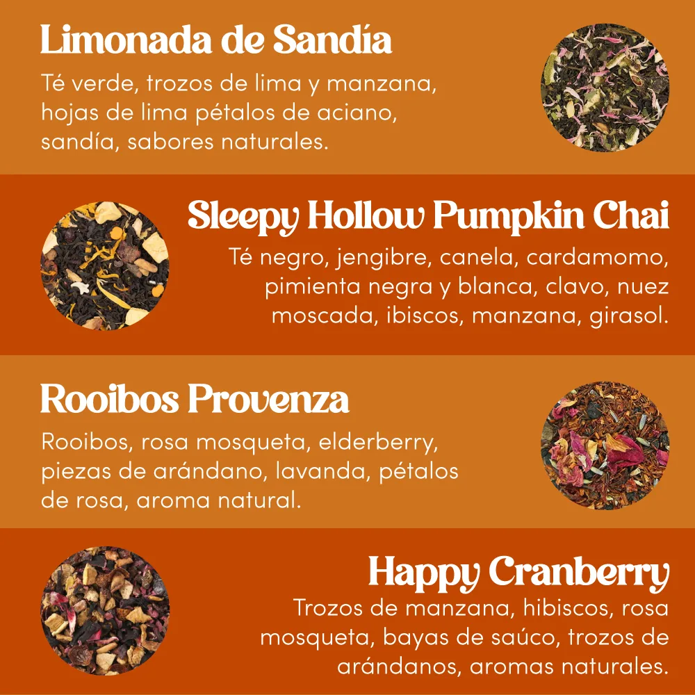 - Elección Personalizada: Selecciona tus tés preferidos de nuestra variedad.