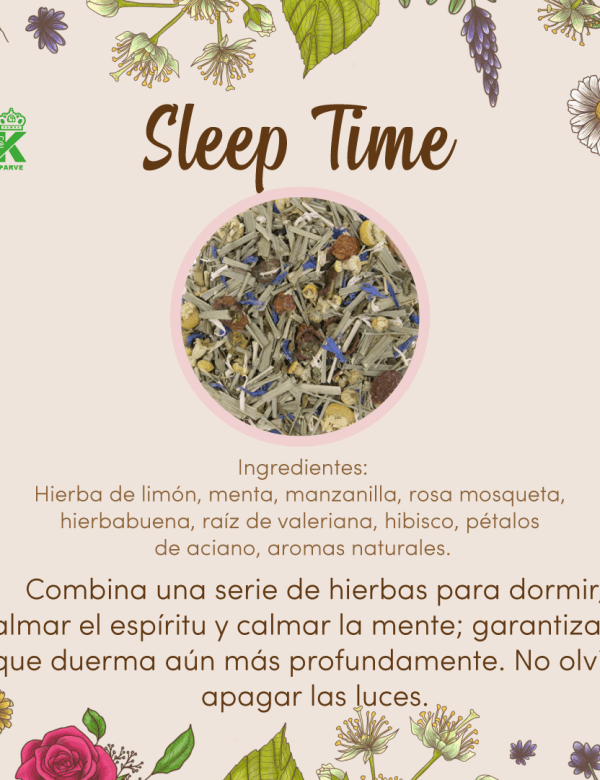 - Sleep Time (30g): Esta mezcla especial está diseñada para promover un sueño reparador, ayudándote a relajarte al final del día.